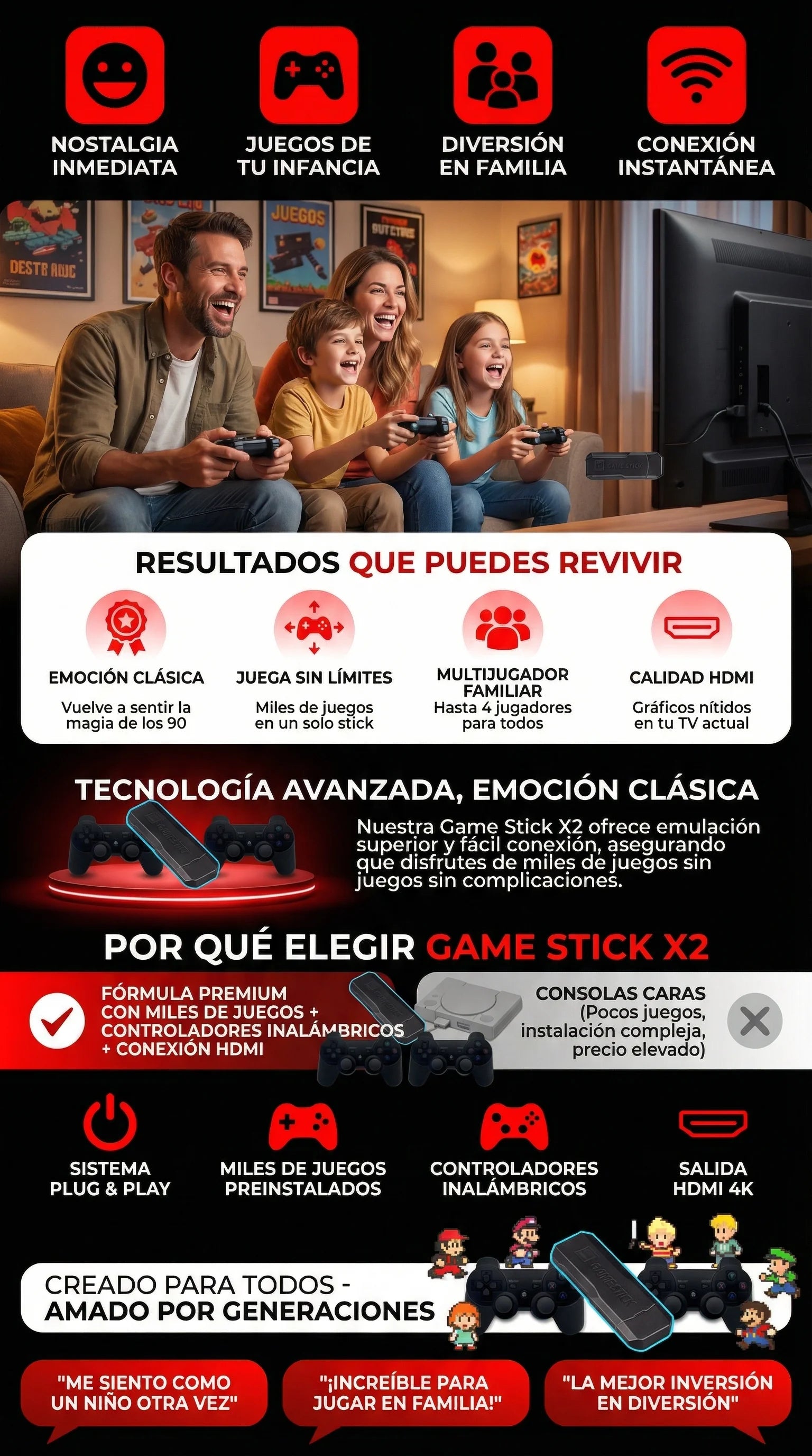 No es solo una consola. Es sentarte con tus hijos y mostrarles los juegos con los que vos creciste. Es reírse, competir, compartir y volver a unir a tu familia.