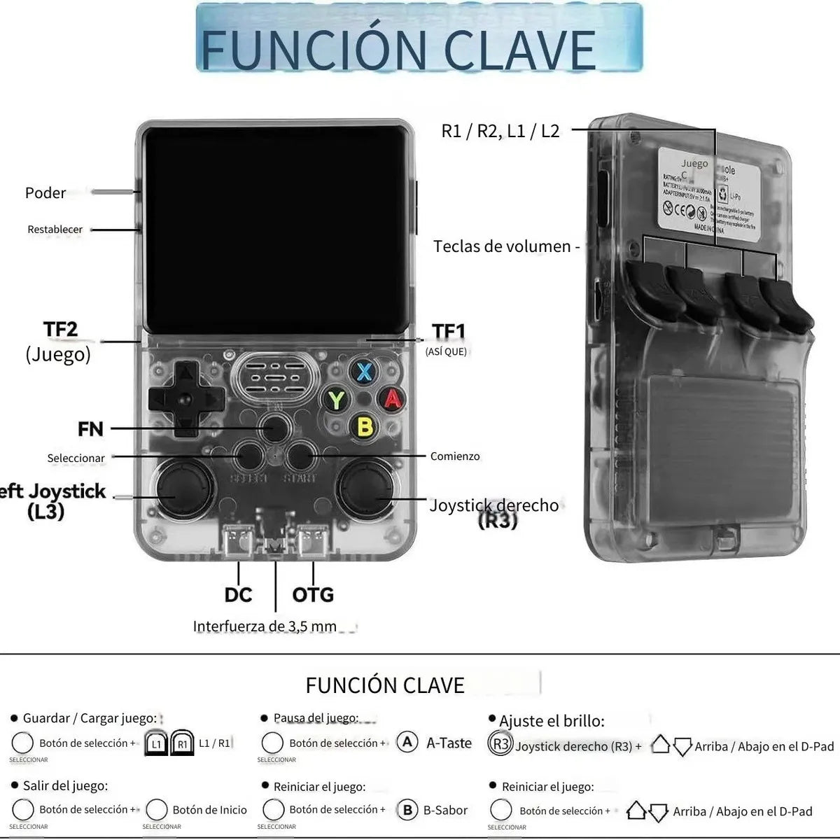 Gracias a su procesador de cuatro núcleos de 64 bits y sistema Linux optimizado, la R36S ofrece: