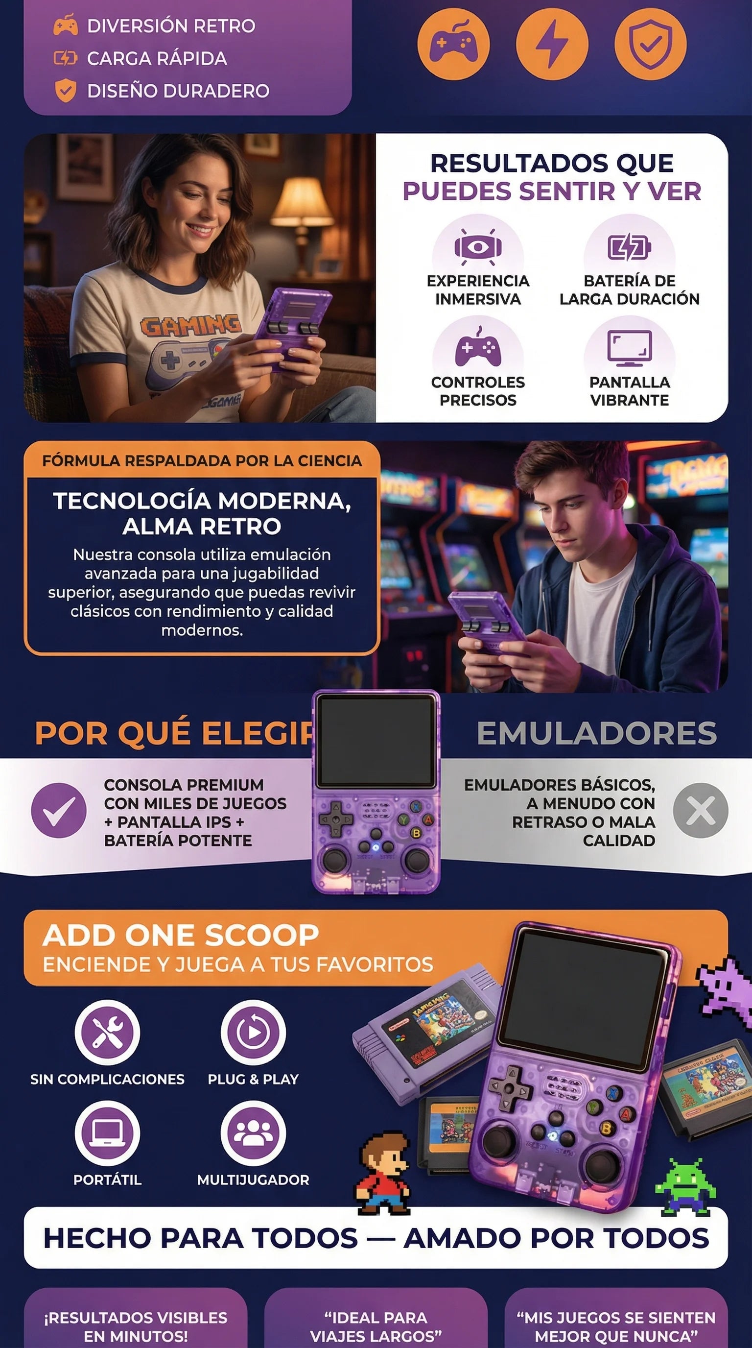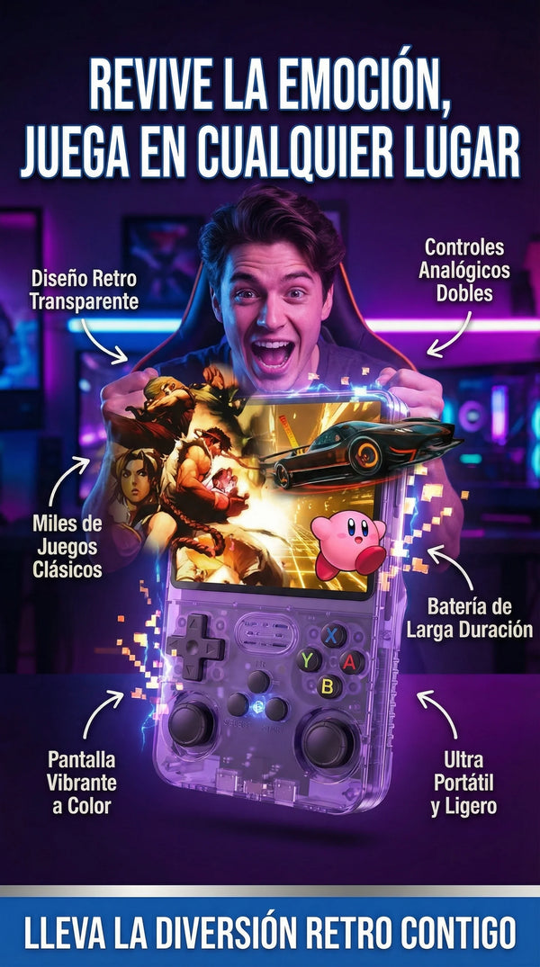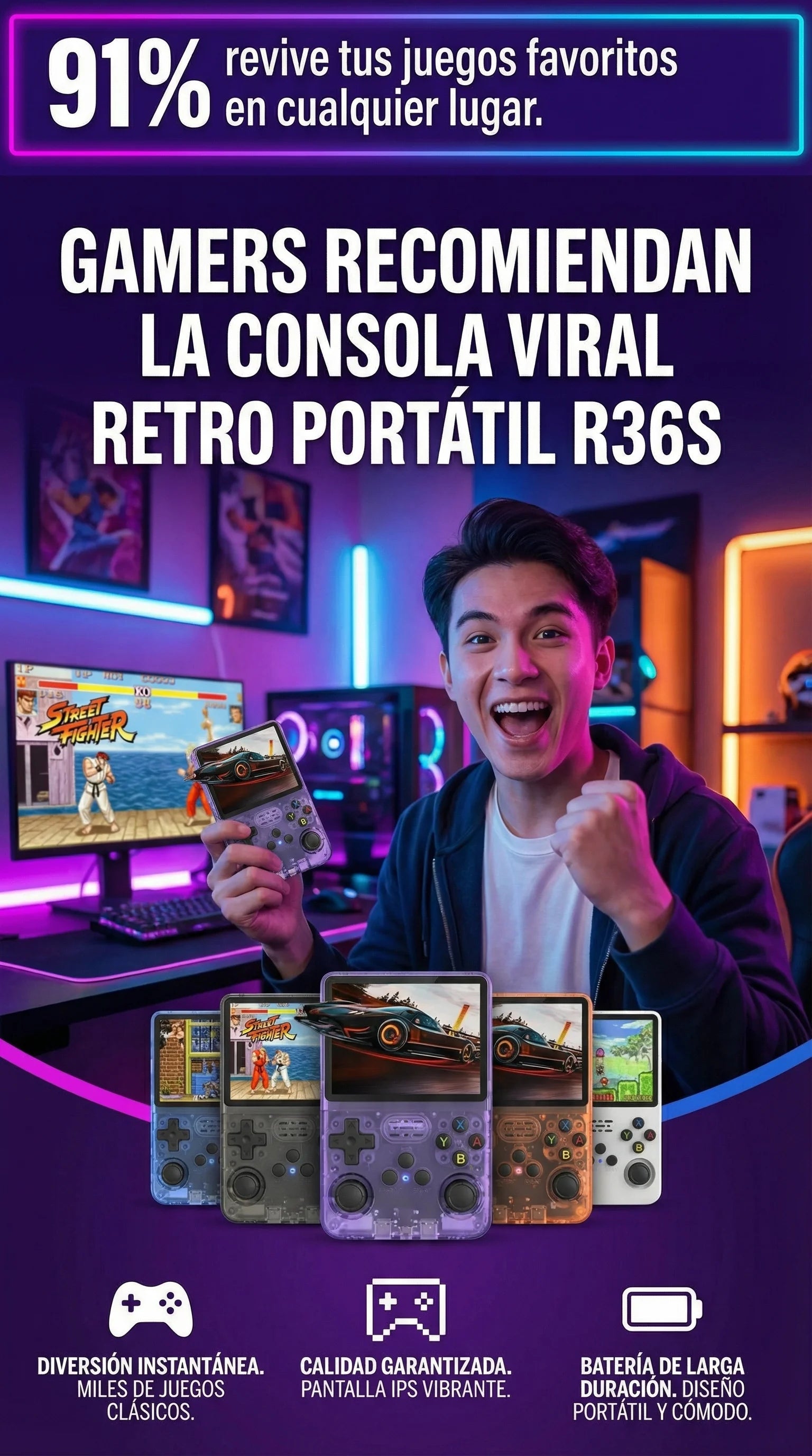 Johana D. 18 Enero 2025Comprador verificadoCliente de Santa Fe“Buscaba algo simple para jugar juegos clásicos y fue un acierto. Conectar y jugar, sin vueltas. Ideal para quienes quieren algo sencillo y funcional.”CONSOLA RETRO PORTATIL R36S (2026) ¿Te fue útil esto? 100 0